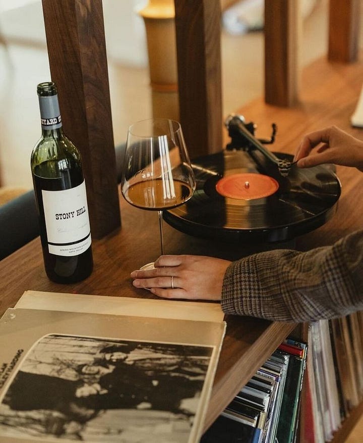 playing vinyl records;