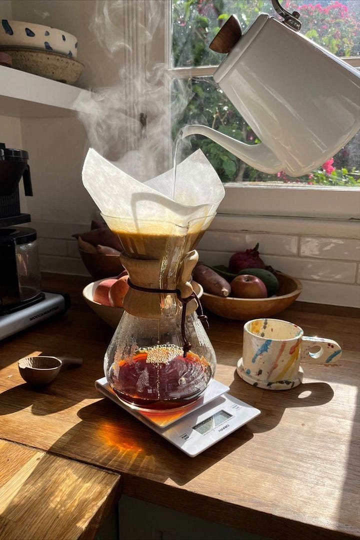 taking your coffee slowly, deliberately, while reading, listening to music or simply staring out the window but always paying attention to every sip;